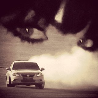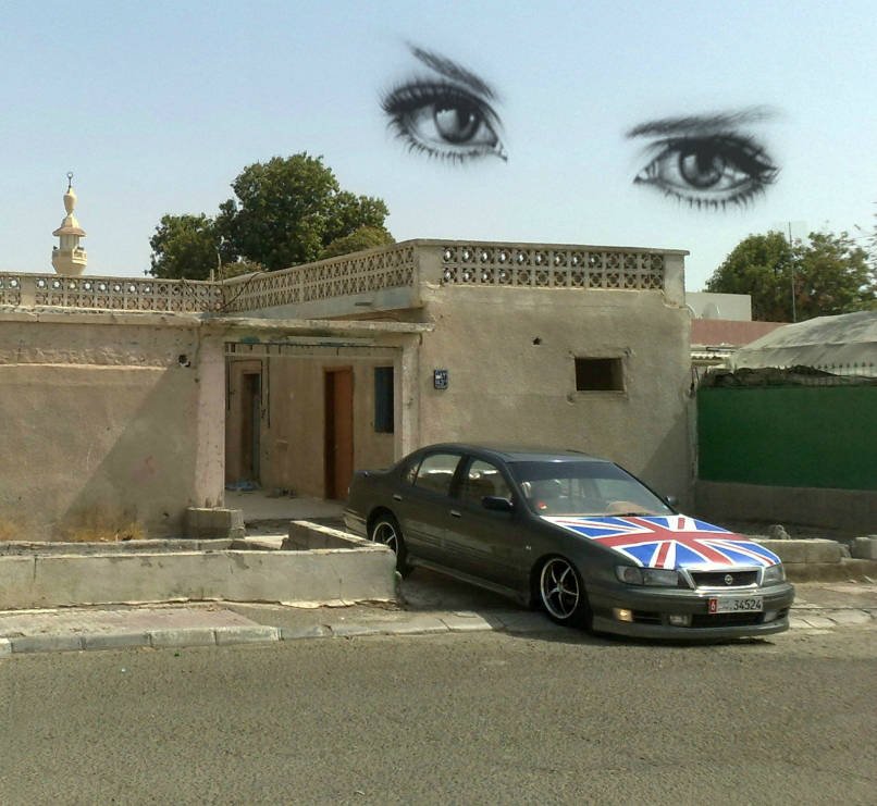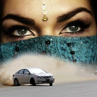 Throughout 2012, 2013 and 2014, Inamson1 uploaded multiple photographs of the same style that he labelled Saudi Drift. He also posted the images to his Flickr account Farfoor Albaloushi throughout the timeframe. His edits showcased stock cars frozen mid-spin beneath veiled gazes, and echoes of heartbreak and faith drifting through the sand.