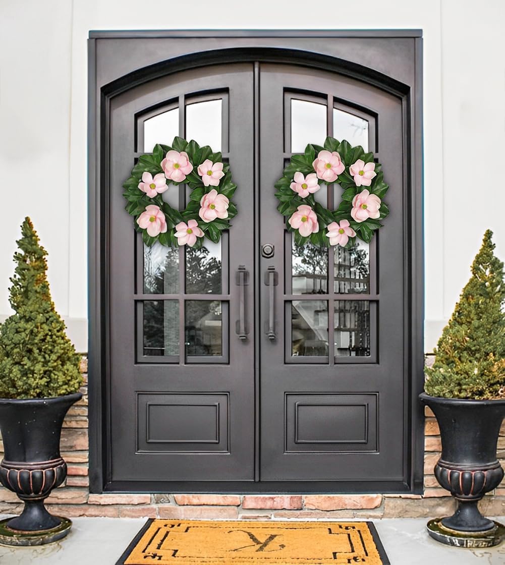 Elevate the look of your home with the exquisite beauty of our artificial magnolia flower wreaths. Each wreath is meticulously crafted with realistic magnolia blooms and vibrant green leaves that deliver a fresh, lifelike appearance. The wreath comes in two classic colors: crisp white for an elegant, minimalist aesthetic or soft pink for a delicate, romantic touch—perfect for any décor theme. Designed to fit any space, this wreath is available in two sizes—20" and 24"—making it a versatile décor option for various settings. Whether you’re adorning your front door to create an inviting entrance, hanging it above your fireplace to enhance your living room, or using it to decorate a special event, this wreath provides a sophisticated focal point. Constructed with high quality materials, this wreath is perfect for year-round use. Ideal for both casual and formal occasions, this artificial magnolia wreath adds a touch of luxury and natural elegance to your home. Bring timeless beauty and lasting style to your space with this exquisite floral wreath.