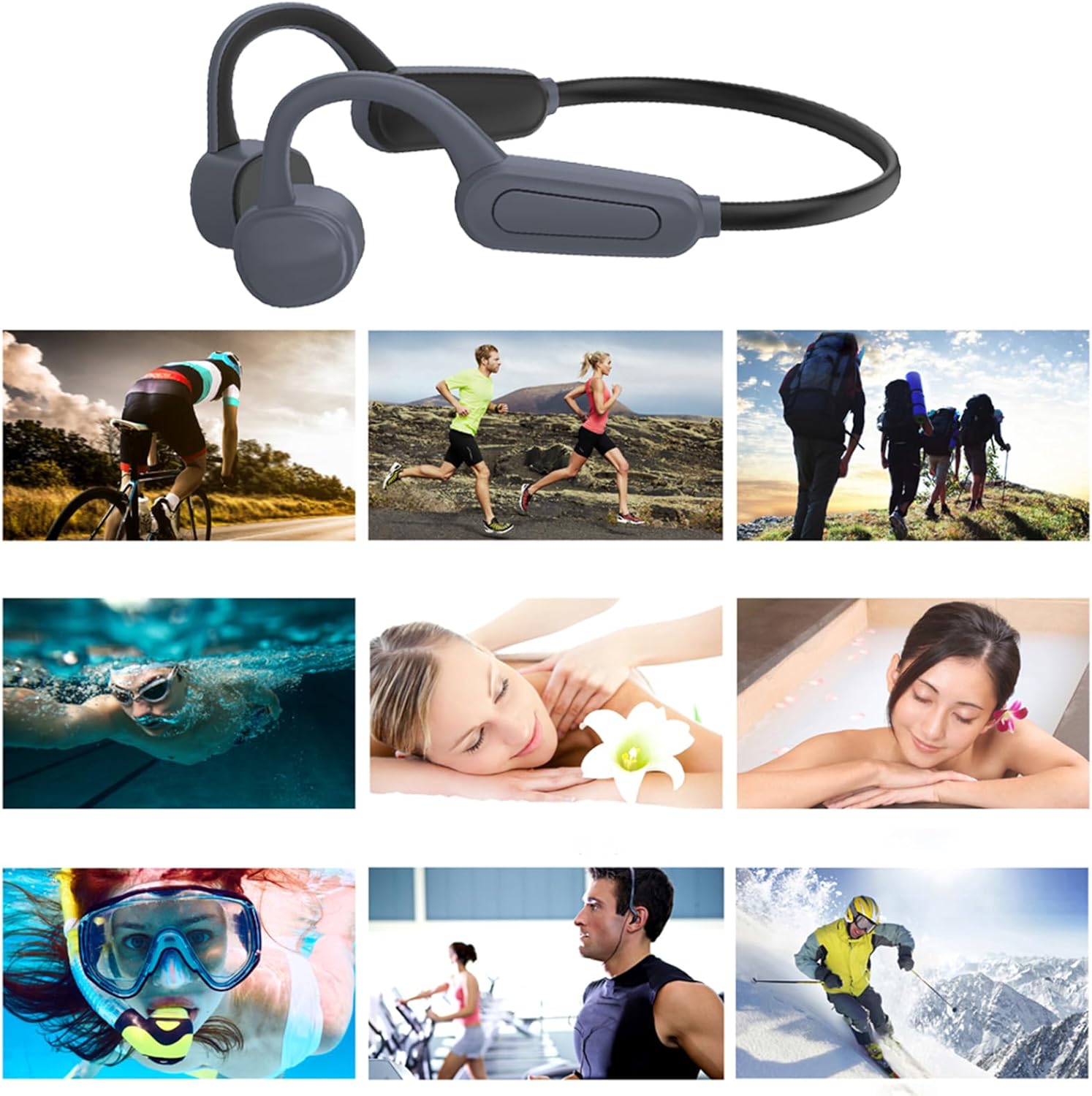 (Please note that please use MP3 mode when swimming, Bluetooth will be restricted in water!!!)【Specially Designed for Swimmers - IPX8】Our bone conduction headphones are meticulously crafted for swimmers, boasting an IPX8 waterproof rating. This means they can be submerged up to 3 meters for a continuous 30 minutes without any damage. It makes them the perfect companion for swimming exercises, allowing you to enjoy music while freely navigating pools or oceans.【Open-Ear Design】The headphones feature an open-ear design that doesn't block the ear canal. Instead, it utilizes vibration to conduct sound directly to the inner ear. This design ensures that you remain aware of your surroundings while using the headphones, enhancing safety during swimming by allowing you to stay alert to your environment.【360° Bendable】Crafted with soft silicone and a flexible design, our bone conduction headphones can bend 360 degrees to accommodate various head shapes. This ensures a comfortable and secure fit, whether you're swimming, diving, or engaging in other water activities. The headphones will stay securely in place without the risk of falling off.【Built-in 16GB Memory + MP3】With a spacious 16GB internal storage capacity, these headphones eliminate the need to rely on smartphones or other devices. They also support MP3 format playback, allowing you to effortlessly enjoy music underwater. The convenience of carrying your favorite tunes without the hassle of a phone adds to the overall user experience.【Bluetooth 5.0】Utilizing the latest Bluetooth 5.0 technology, our bone conduction headphones offer faster transmission speeds, a more stable connection, and lower energy consumption. This means you can easily connect to various Bluetooth devices, whether by the pool or outdoors, ensuring a high-quality music experience. Enjoy the freedom to immerse yourself in music wherever you go, untethered by wires.